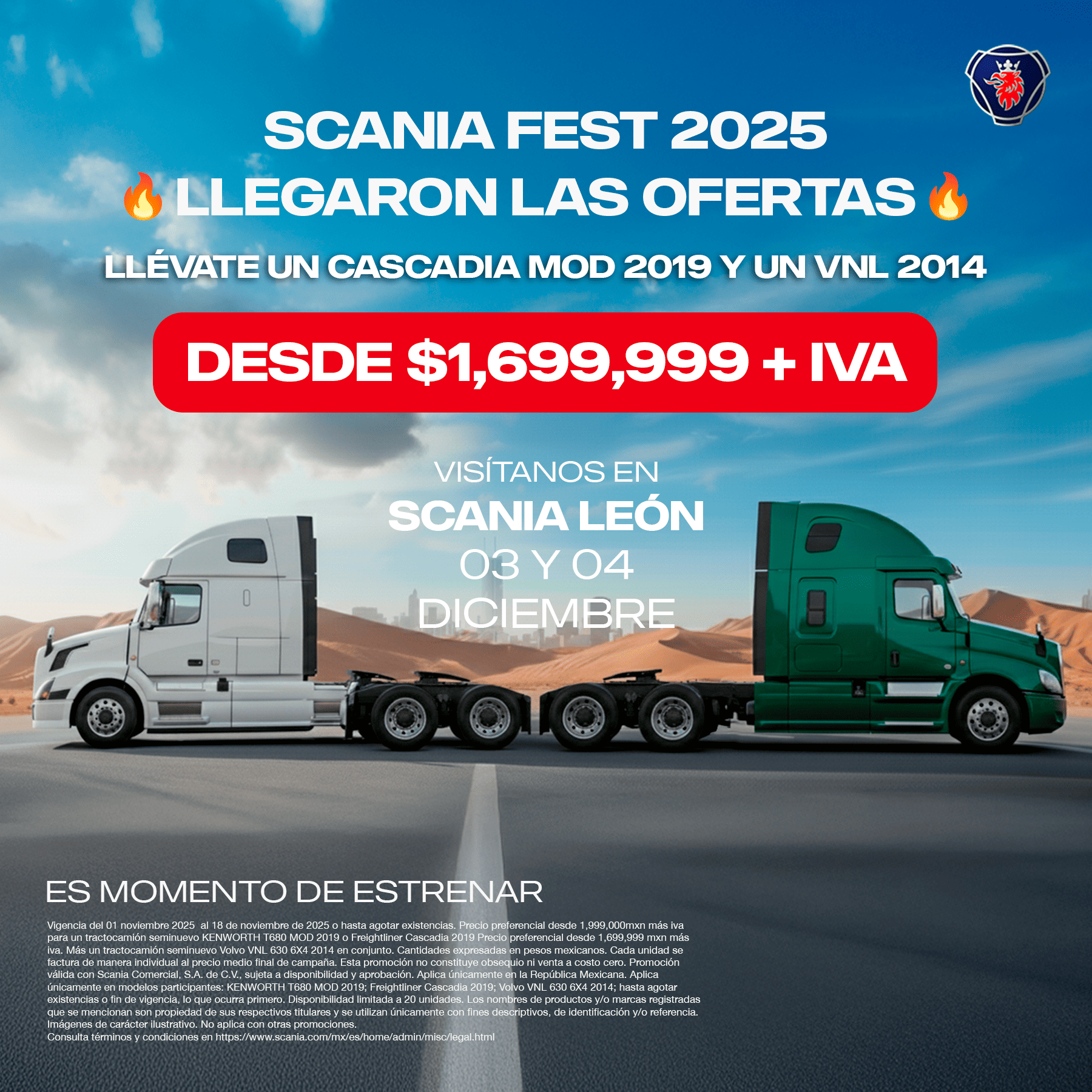 Con un 20% de enganche, obtienes un crédito directo con Scania Finance y hasta 60 meses para pagar.